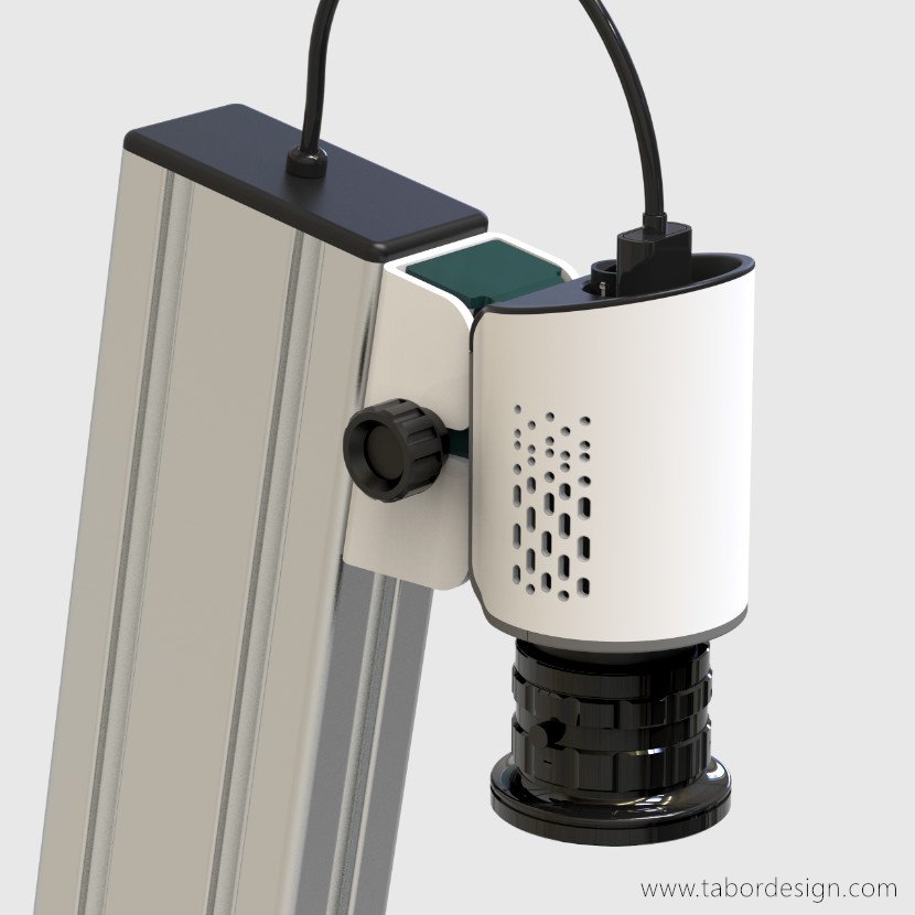 Ze względu na niską serię, należało ograniczyć czynności technologiczne i liczbę cześci do minimum. Statyw składa się z jedynie trzech elementów dedykowanych, reszta to standardowy profil i komponenty łączące. Podstawa statywu to solidny wykrój z blachy aluminiowej, gięty i lakierowany proszkowo. Kolumnę stanowi odcinek profilu Bosch Rexroth. Głowica mocująca kamerę składa się z dwóch aluminiowych giętych wykrojów dopasowanych do siebię w taki sposób, aby pozycjonowanie kamery odbyło się łatwo i szybko.